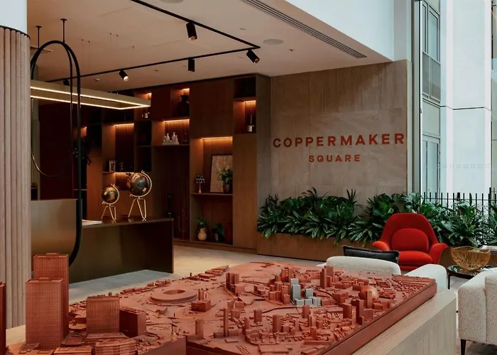 Coppermaker Square In Stratford is a 4-star hotel featuring One and Two Bedroom Apartments. Amenities include a garden, free WiFi, and spa facilities. The property has a solid Booking.com rating of 9.0/10.