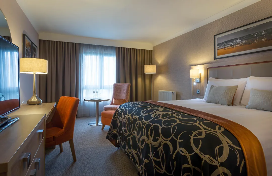 Rooms at Clayton Hotel, Manchester Airport include Deluxe, Executive King, and spacious family rooms accommodating up to 2 adults and 2 children. Each room features a private bathroom with Clayton toiletries and a flat-screen TV, along with free Wi-Fi and blackout curtains.