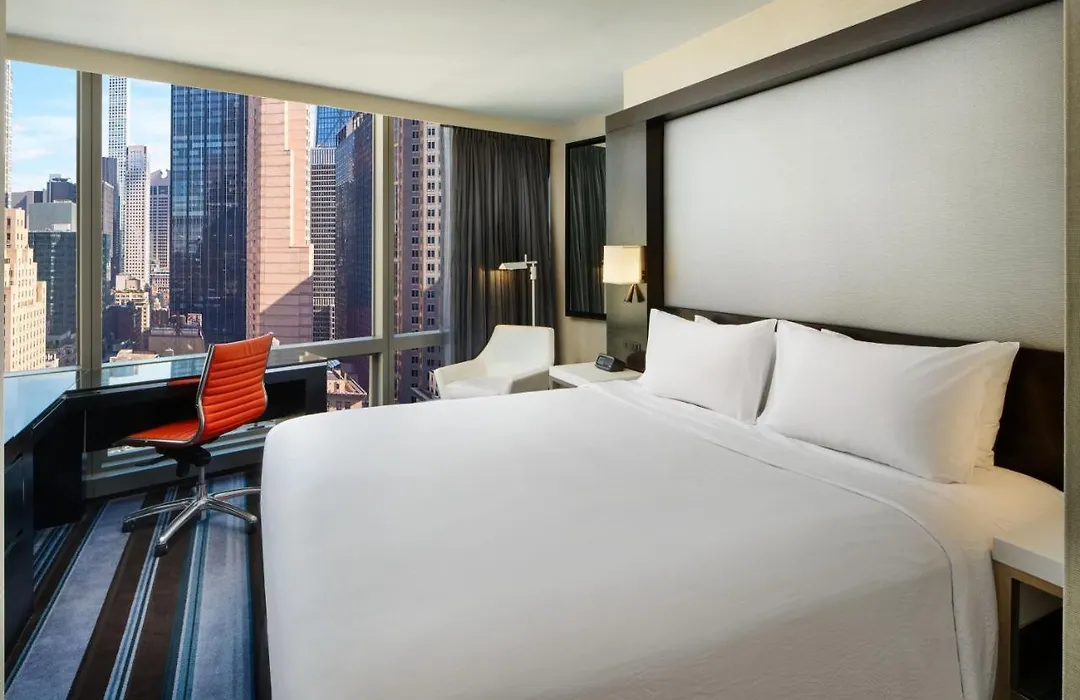 Courtyard By Marriott New York Manhattan/Central Park is a 4-star hotel in Midtown West, offering stunning views of the city skyline and Central Park. Guests can enjoy convenient amenities such as a fitness center with Peloton bikes, an onsite restaurant serving Starbucks(R) coffee, and a bar. The hotel is rated 8.2/10 on Booking.com.