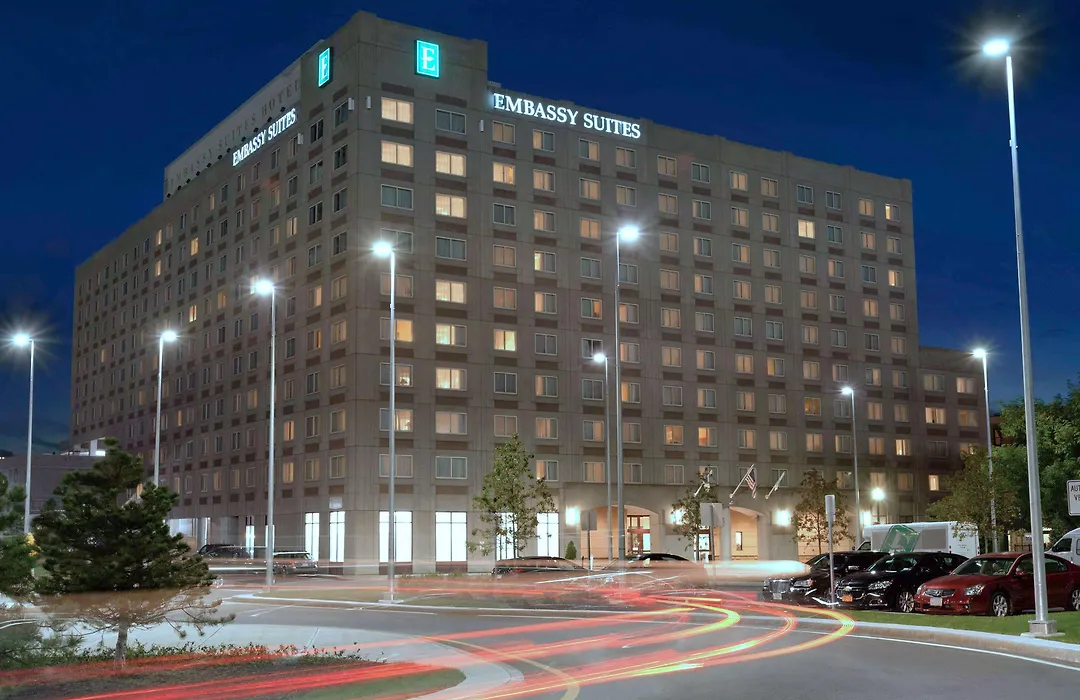 All guestrooms at Embassy Suites boast air conditioning, a flat-screen TV, and complimentary high-speed Internet. Featuring two-room suites, guest accommodations include a living area with a sofa bed, microwave, and wet bar, ensuring a functional space for families and groups.