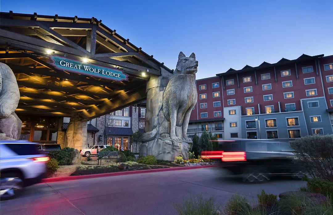 The indoor water park at Great Wolf Lodge Grapevine includes a variety of slides, a lazy river, and children's play areas, alongside the Adventure Park attractions available at an additional cost. Guests can participate in daily activities like dance parties and story time.