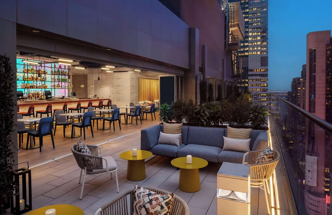Hampton Inn By Hilton New York Times Square features a lobby bar and a roof-top lounge for relaxation. The front desk operates 24 hours, assisting with guest inquiries and information.