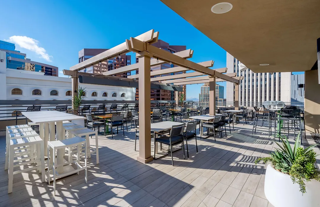 Hilton Garden Inn Phoenix Downtown is a 3-star hotel located in the heart of Downtown Phoenix, offering accommodation with a unique Art Deco design and modern comforts. Amenities include free WiFi, a rooftop bar, a fitness center, and a full-service restaurant.