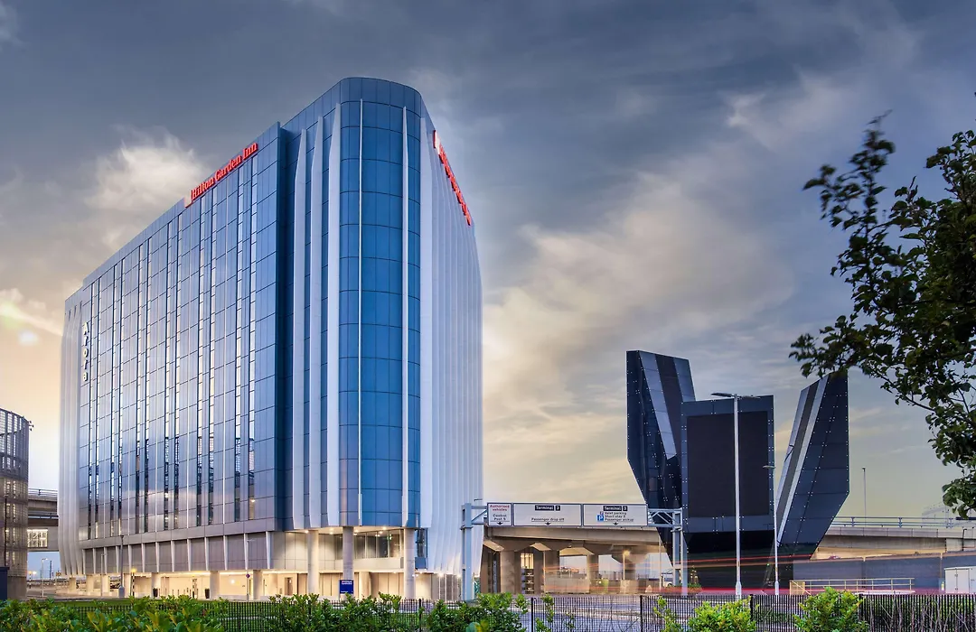 Hilton Garden Inn London Heathrow Terminal 2 And 3 features direct access to Heathrow Terminal 2 and offers a 4-star experience with an 8.4/10 Booking.com rating. Guests benefit from a restaurant, room service, and a rooftop bar overlooking the runway.