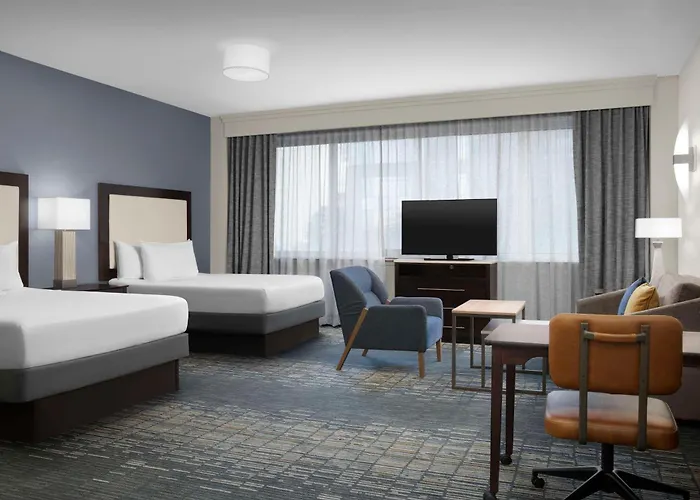 Homewood Suites Dallas Downtown, a 3-star hotel with an 8.2/10 rating, features spacious suites designed for longer stays. It offers amenities including a heated indoor pool, fitness center, and a complimentary full hot breakfast.