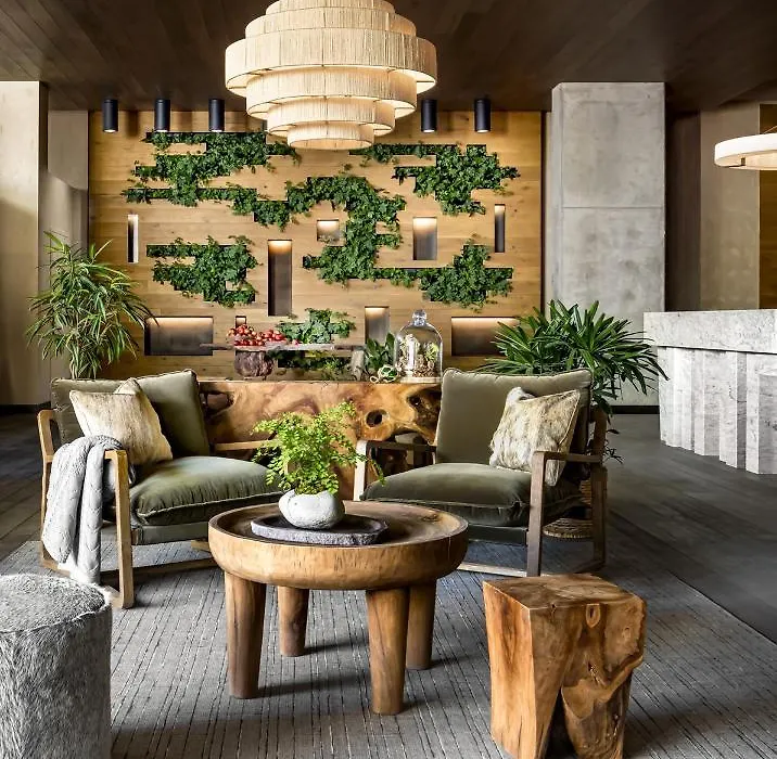 Guestrooms feature floor-to-ceiling windows with views of the city, complemented by rich color palettes and sustainable furnishings using local and reclaimed materials. Each room includes organic mattresses, cotton bedding, a coffee machine, and a Bluetooth speaker, creating a serene and eco-conscious retreat.