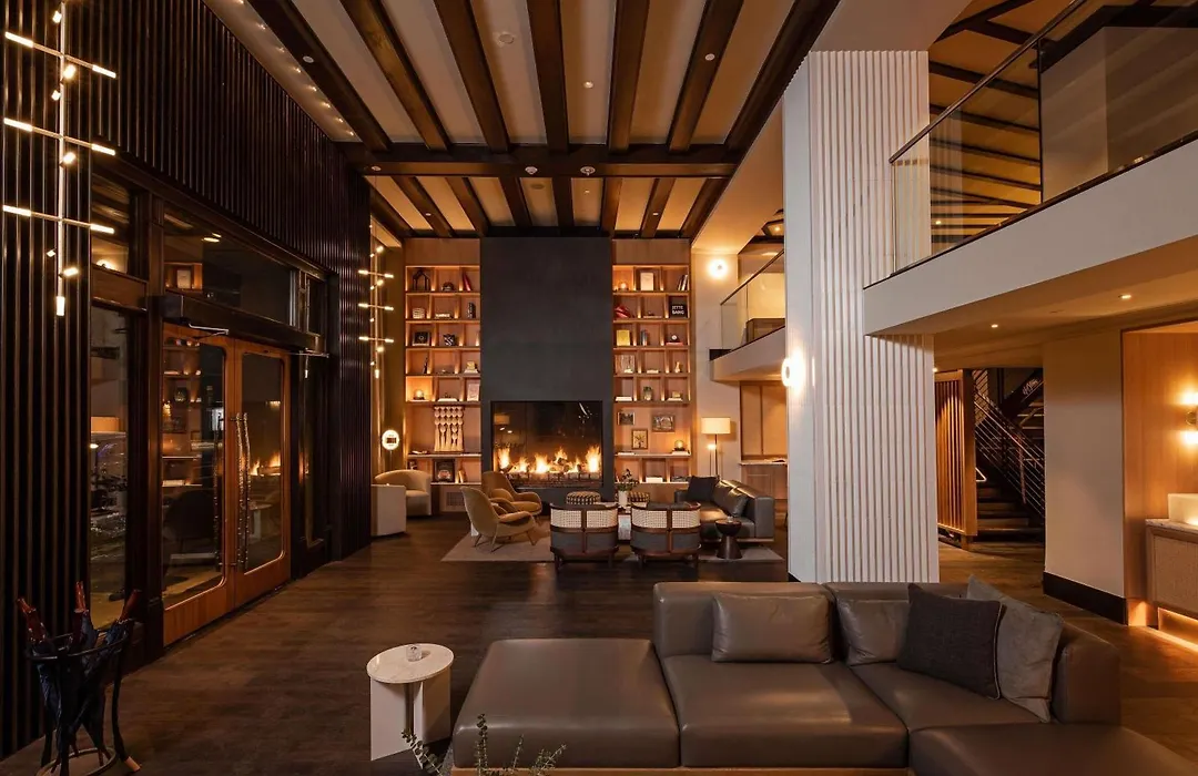 The hotel has a versatile event space ideal for hosting business events and celebrations. The Living Room lobby serves as a comforting common area, designed with a full-height fireplace and contemporary seating.
