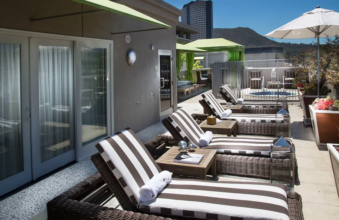 The hotel is located close to major Burbank attractions like Universal Studios Hollywood, Warner Bros. Studios, and the Hollywood Bowl. Nearby transportation options include Universal City/Studio City subway station and bus routes. For pet owners, Hotel Amarano provides large walking areas and access to parks such as Griffith Park.