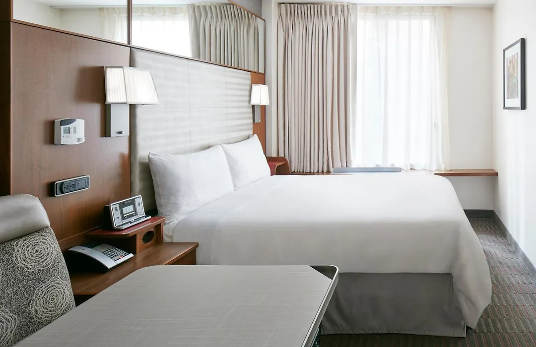 Rooms at Club Quarters Hotel Grand Central include flat-screen TVs, work desks, coffee/tea making facilities, and private bathrooms. Select accommodations feature kitchenettes and spacious layouts for long stays.