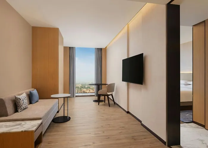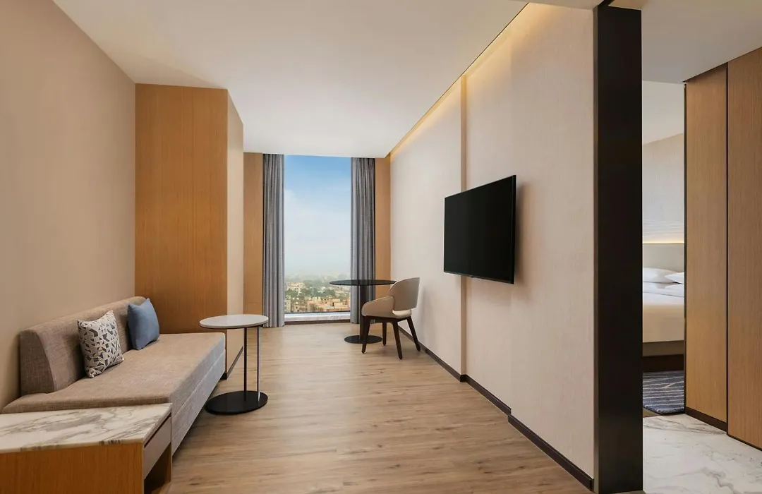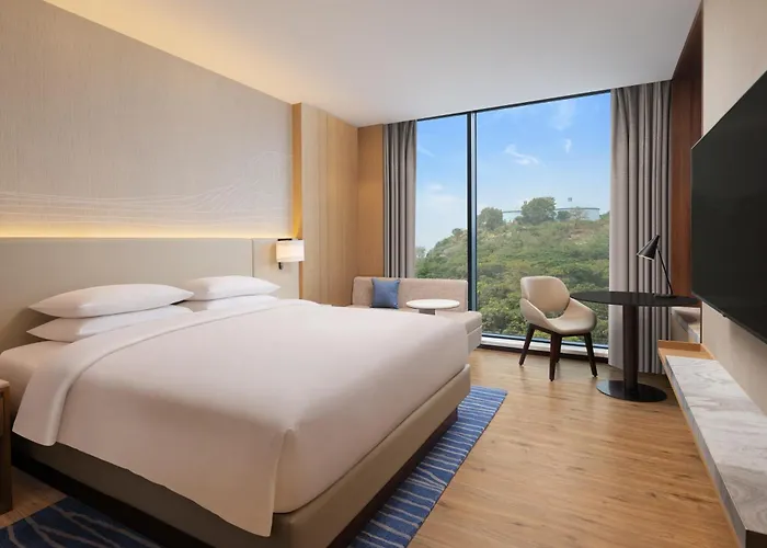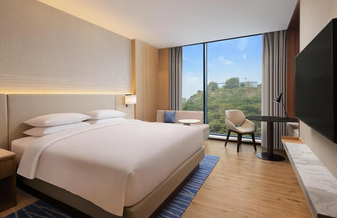 Rooms at Courtyard By Marriott Ranchi are spacious and air-conditioned, featuring a flat-screen TV, wardrobe, and private bathroom with free toiletries. Options include double rooms with garden views and suites with additional amenities like a bathtub.