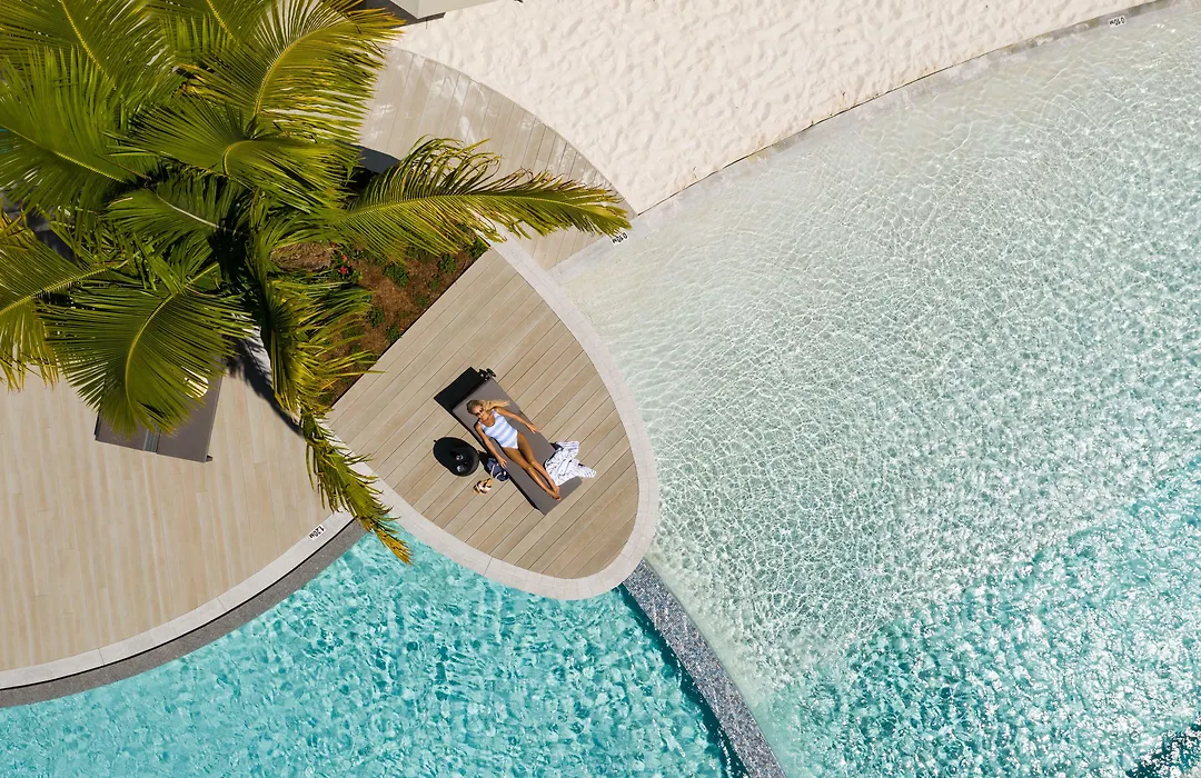 Crystalbrook Riley offers 5-star luxury with a stunning 1000 m² lagoon-style swimming pool and diverse dining options, including Asian fusion at Paper Crane. This Cairns hotel is eco-friendly, featuring modern amenities and design elements throughout its facilities.