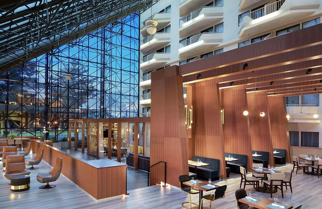 Bistro 128 serves a breakfast buffet with hot and cold cereals, fresh fruit, and specialty breads, along with a menu of main meals and room service. Starbucks coffee bar offers a range of beverages and light snacks, making it easy for guests to refuel.
