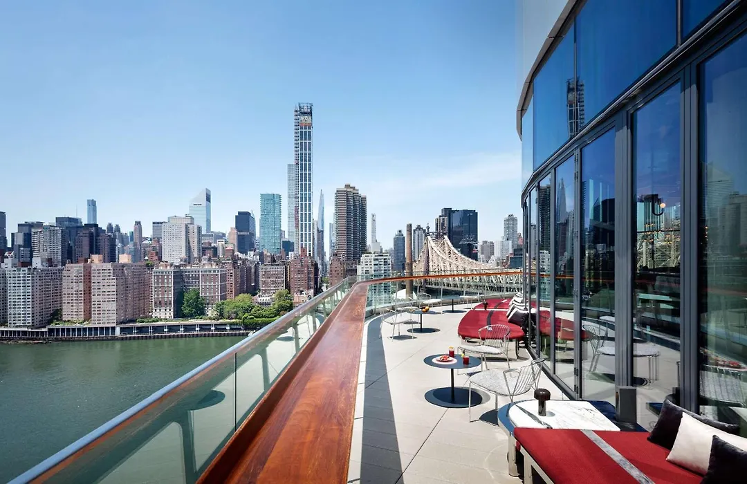 Graduate By Hilton offers a rooftop bar with 360-degree views of the city. Public spaces are designed with community in mind, encouraging social interactions among guests. Local transportation includes the Roosevelt Island Tramway and subway stations within a short walking distance.