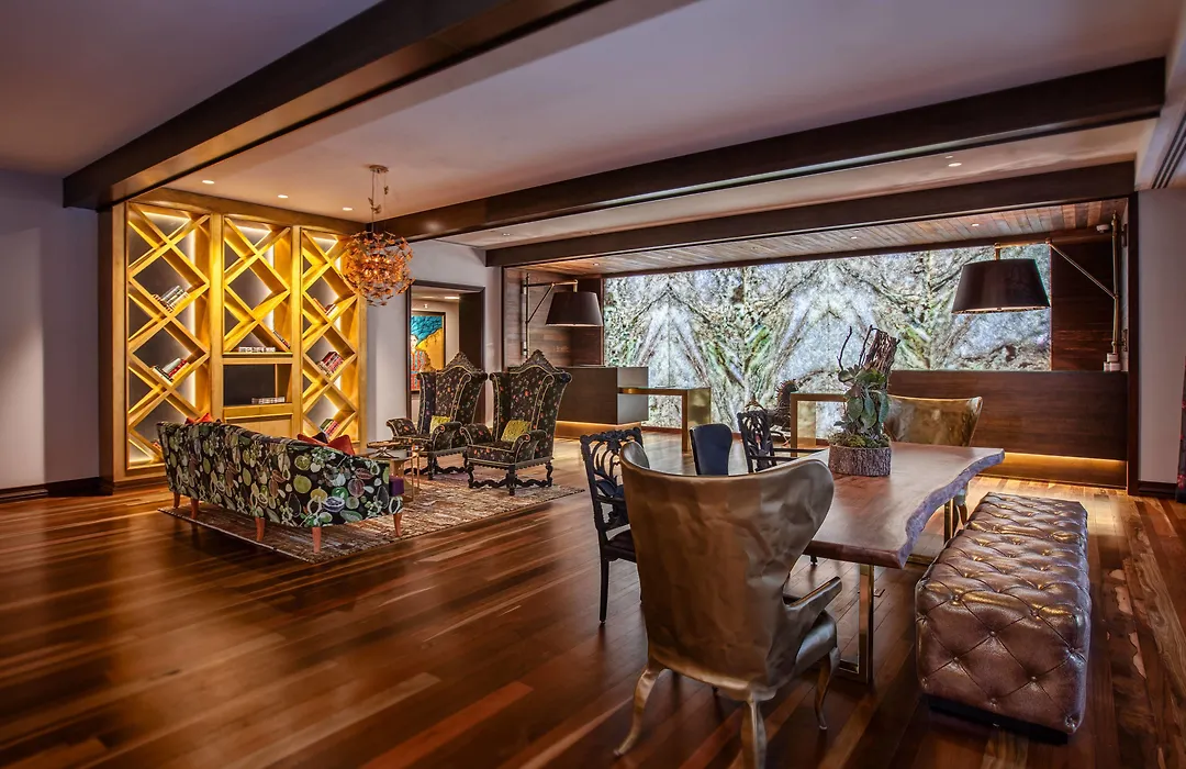 Dining options include Habitat Feed & Social, a rooftop restaurant serving farm-to-table cuisine and innovative cooking classes. Guests are encouraged to engage in unique culinary experiences, including a wine blending class. Room service is available for added convenience.