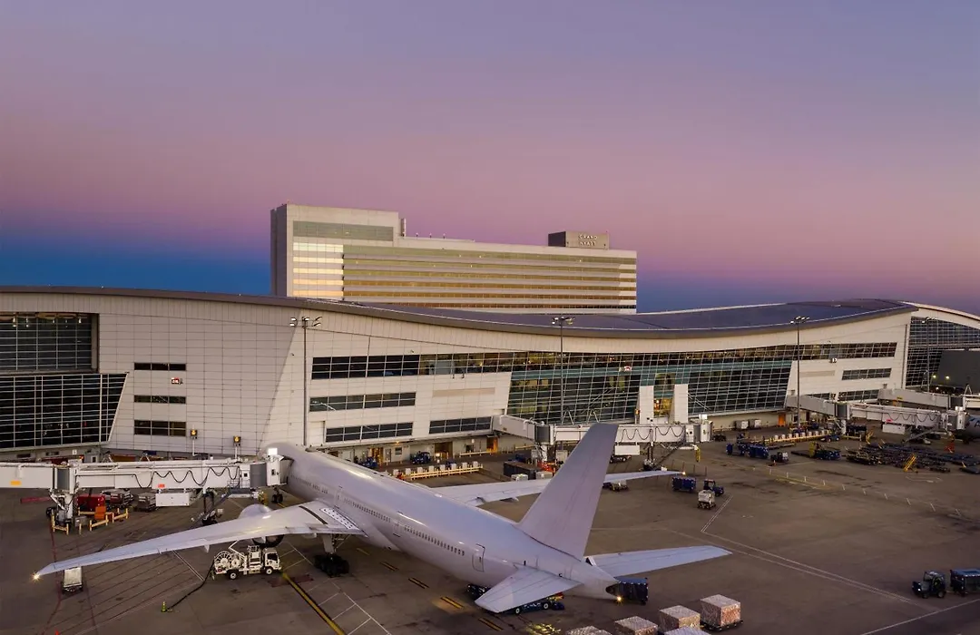 Grand Hyatt DFW Airport is a 4-star airport hotel located inside DFW International Airport Terminal D, offering unparalleled service levels and luxury. The hotel features spacious accommodations, a full-service fitness center, and an outdoor heated swimming pool.