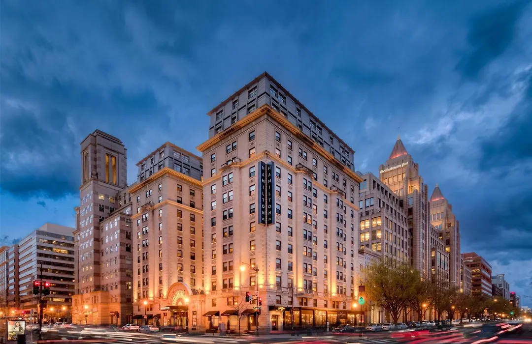Hamilton Hotel - Washington Dc offers a luxurious stay in a beautifully designed environment with modern amenities and fine dining. This 4-star Washington hotel features a 24-hour fitness center and an intimate lounge bar, Society, that comes alive during happy hour.