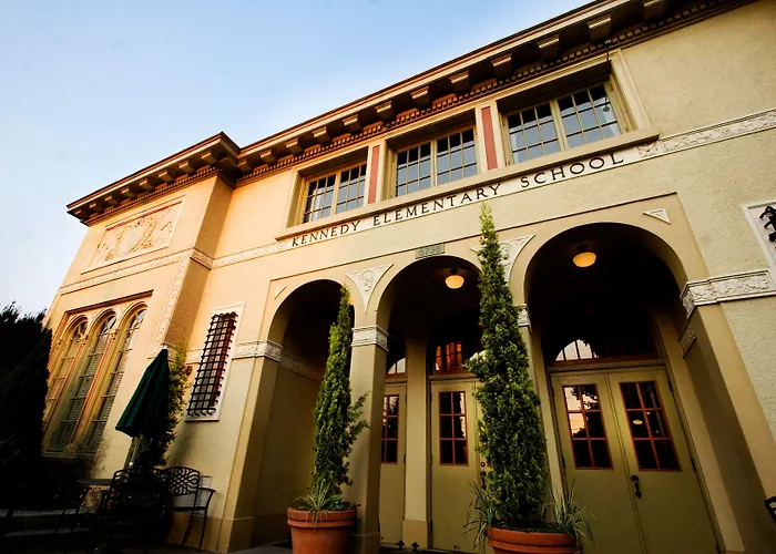 Mcmenamins Kennedy School, a 3-star Portland hotel with an 8.6/10 Booking.com rating, features an on-site movie theater, a soaking pool, and a brew pub offering McMenamins ales, wines, and spirits. The hotel adapts a historic elementary school setting from 1915, making it a unique lodging experience in the Concordia neighborhood.