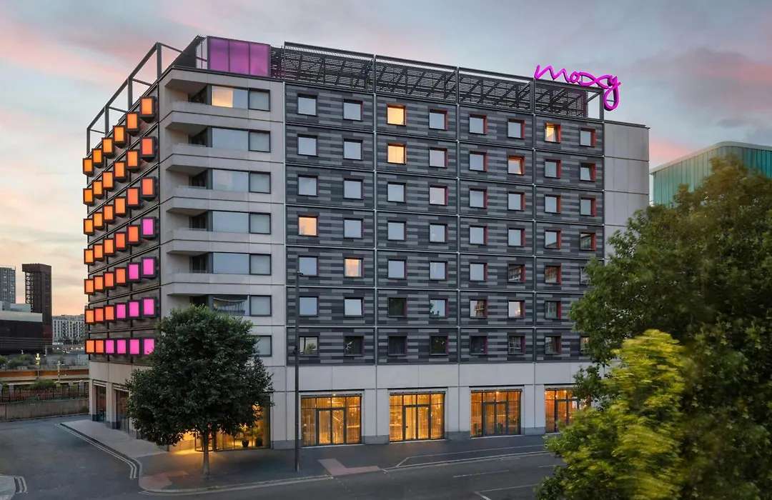 Moxy London Stratford is a 3-star hotel with an 8.5/10 rating known for its vibrant, engaging social spaces and modern design. This affordable hotel offers amenities such as free Wi-Fi, a 24-hour business center, and a grab-and-go bar for snacks and drinks available around the clock.