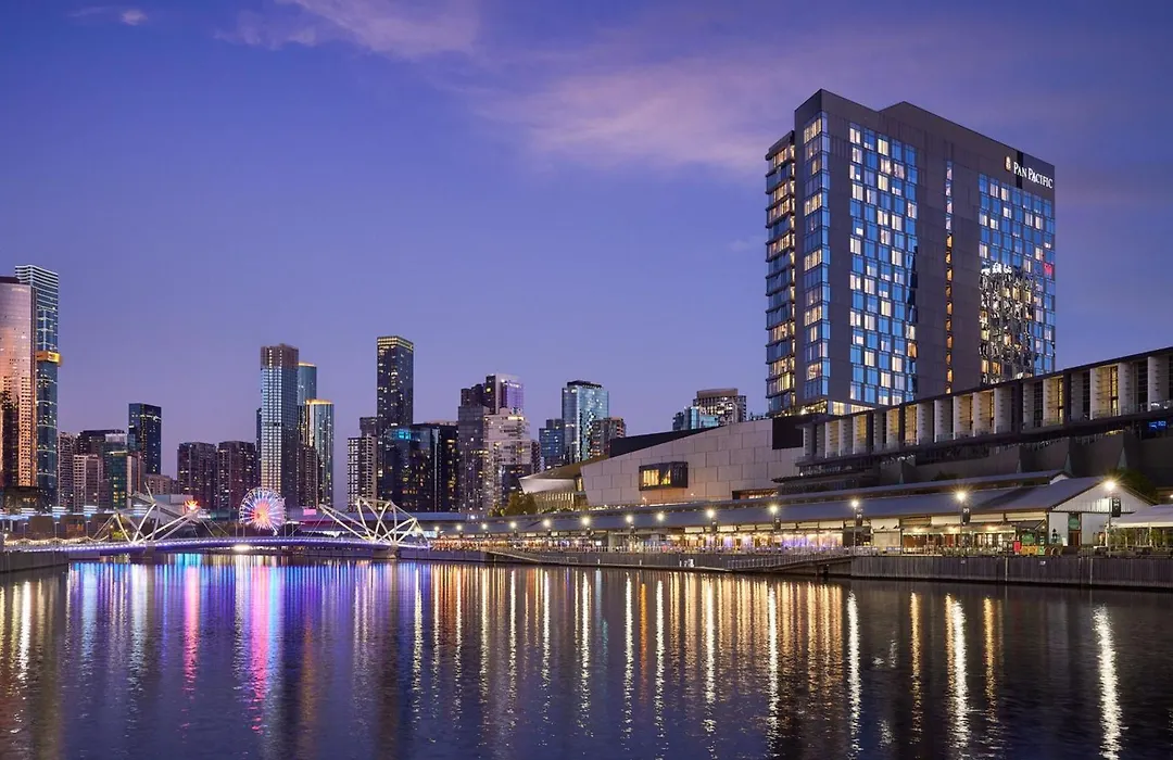 Pan Pacific Melbourne, a 5-star property, offers luxurious accommodation with panoramic views of the city and the Yarra River. The hotel features direct internal access to the Melbourne Convention and Exhibition Centre and is adjacent to the Southwharf DFO shopping centre.