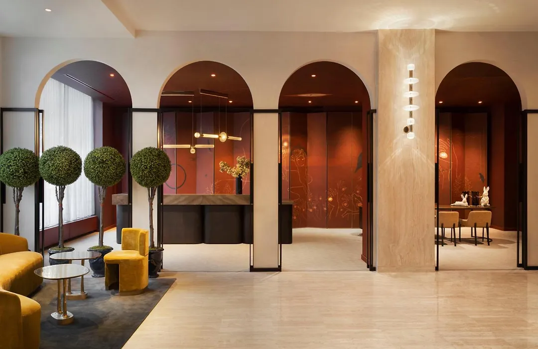 Dining options include Calvert's, offering contemporary classics, and Rose Lane, a Mediterranean-inspired bar and lounge serving breakfast, lunch, and evening bites. The rooftop bar Darling provides signature cocktails and entertainment against a backdrop of Central Park views. Room service is available around the clock for in-room dining.