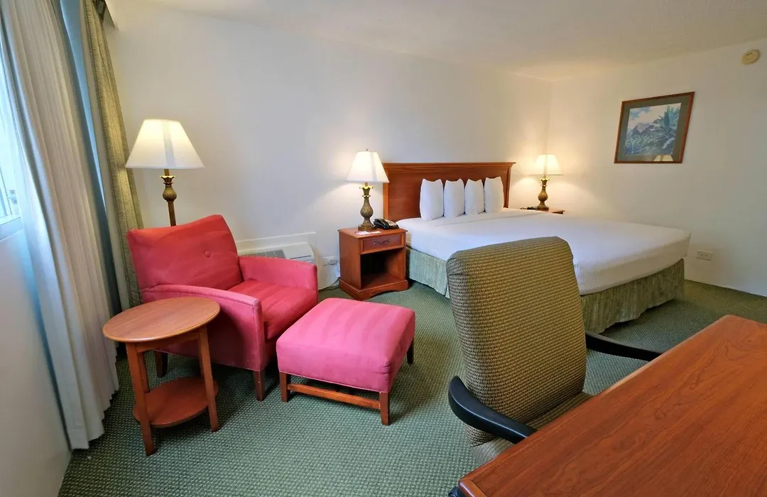 The hotel features 198 air-conditioned rooms equipped with premium bedding, laptop-compatible safes, and flat-screen televisions. Select accommodations offer a balcony or kitchenette, while all include a mini-refrigerator and complimentary toiletries.