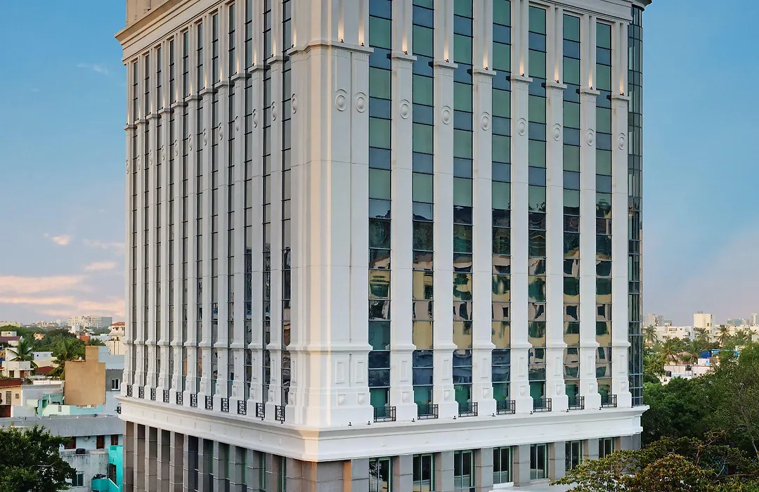 Ramada Plaza Chennai, a 5-star hotel rated 8.4/10 on Booking.com, features modern amenities and is situated in a historic area near key corporate headquarters. The hotel's offerings include an outdoor pool, fitness center, and three on-site restaurants with diverse dining options.