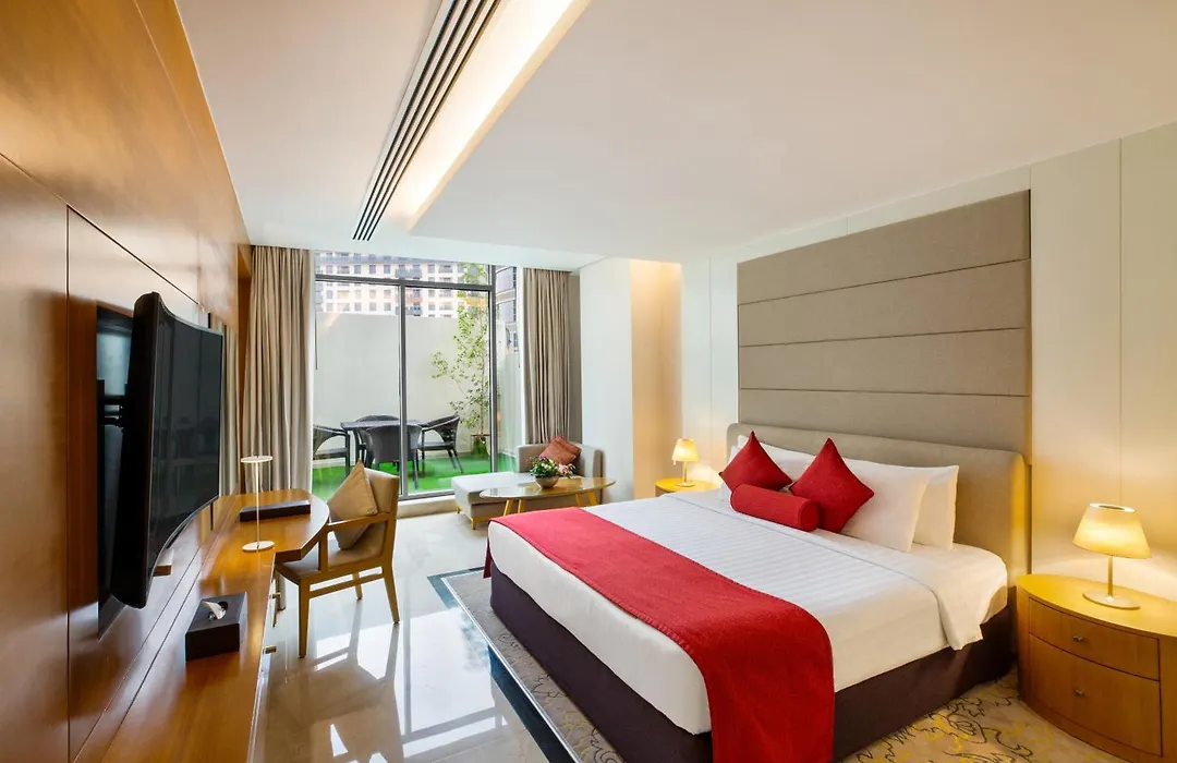 Rooms at Royal Continental Hotel include plush studio apartments and one, two, and three-bedroom accommodations, all equipped with kitchen appliances and modern amenities. Each unit features Royal Continental Digital Connect, an innovative LED screen for room control, ensuring guests' needs are met with minimal effort.