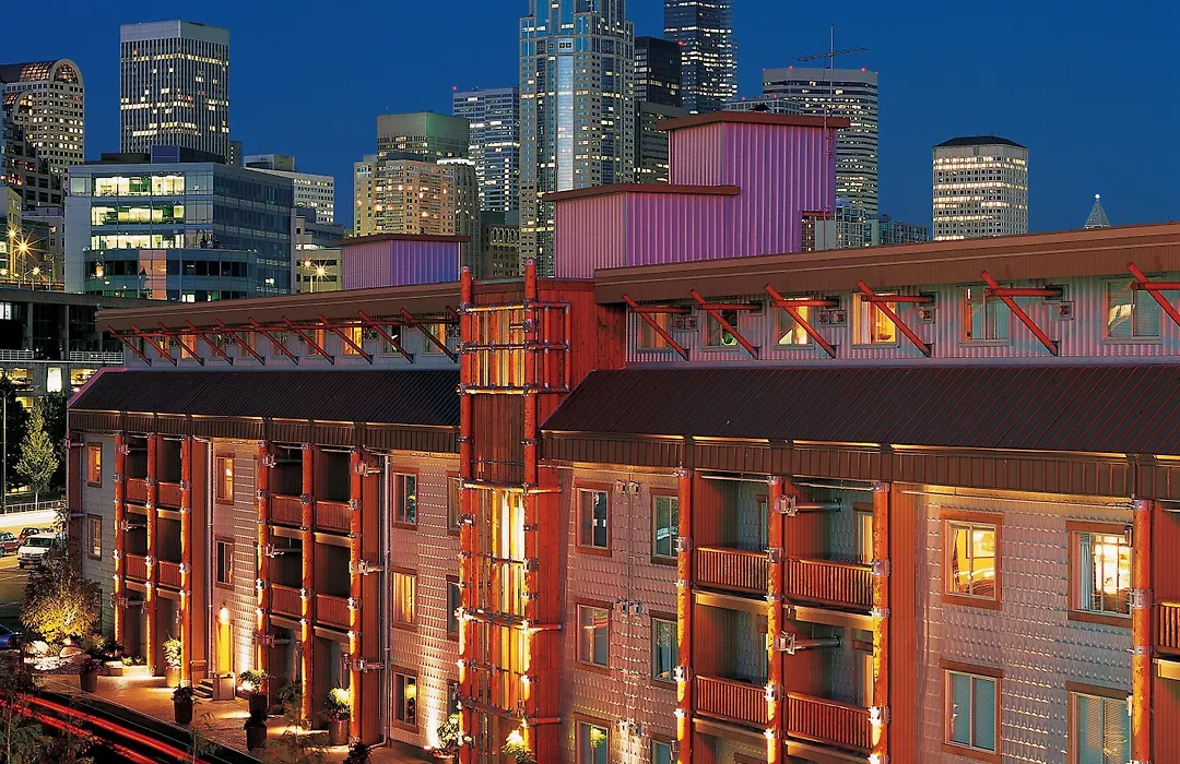 Leisure amenities include a fitness center open 24 hours and complimentary bicycle rentals for exploring Seattle. Weekly live music events enhance the vibrant atmosphere of the hotel, while the nearby attractions include Pike Place Market and the Space Needle.
