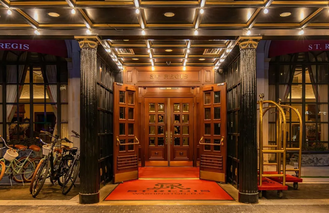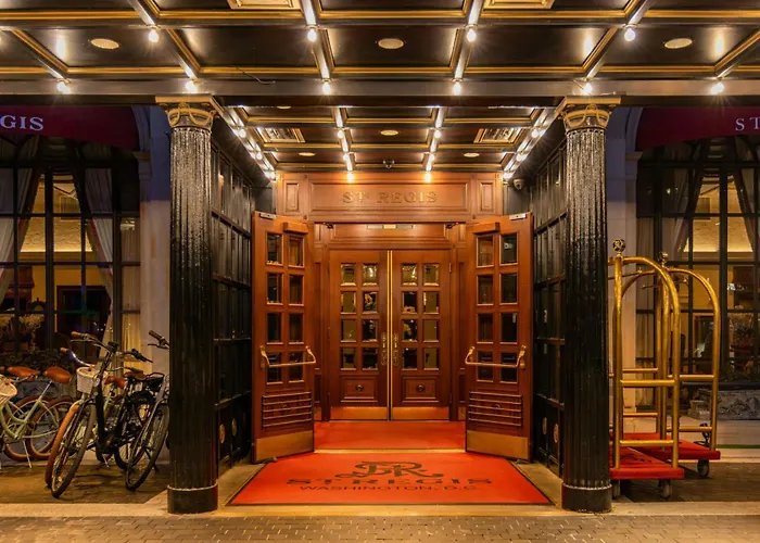 The St. Regis Washington, D.C. is a 5-star luxury hotel renowned for its historic elegance, featuring an ornate grand lobby and exceptional dining options. Guests benefit from the St. Regis Butler Service and access to a fitness center and business facilities. Located in the upscale Golden Triangle district, it is steps away from the White House and within walking distance to the National Mall's monuments and museums.