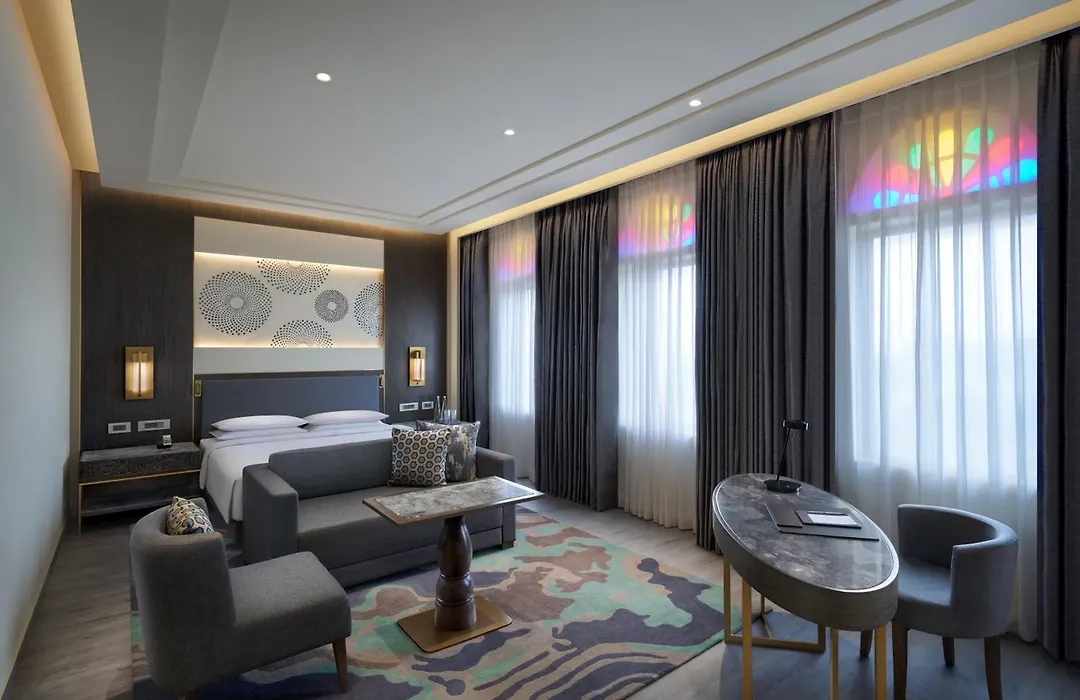 Rooms at Hyatt Regency Jaipur Mansarovar are equipped with air conditioning, a flat-screen TV with cable channels, and a private bathroom with complimentary toiletries. Some rooms include a balcony. Guests can enjoy a continental or buffet breakfast each morning.