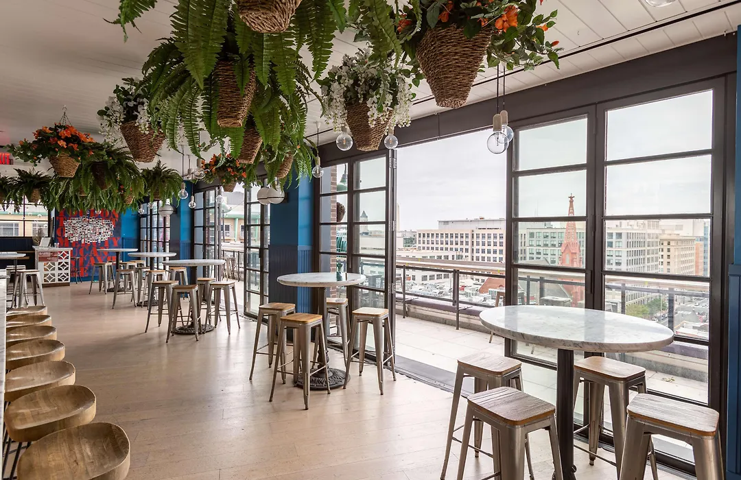Dining options include Crimson Diner, a casual restaurant serving Southern-inspired dishes, including a famous fried chicken sandwich. The rooftop bar, Crimson View, offers clear vistas of the Washington Monument, making it a standout for guests wanting to enjoy their meals outdoors.