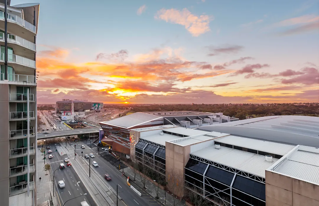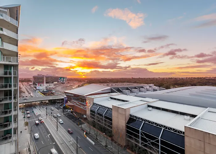 Oaks Adelaide Horizons Suites offers spacious, apartment-style accommodations situated on North Terrace, opposite major landmarks such as the Adelaide Convention Centre and Sky City Casino. This 4-star Adelaide hotel features an indoor swimming pool, a fully equipped gym, and modern amenities. Ideal for both business and leisure travelers seeking self-contained apartment options in the CBD.