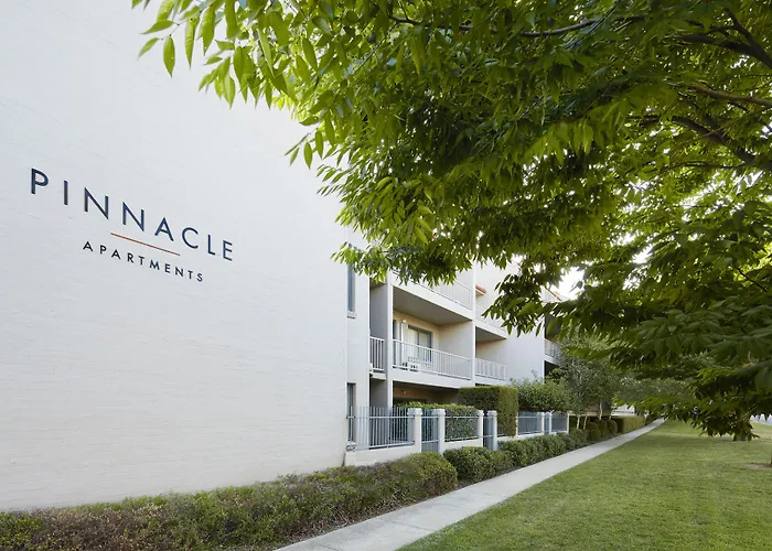 Pinnacle Apartments is a 4-star Canberra hotel with a rating of 8.8/10 on Booking.com, offering self-contained accommodations with full kitchen facilities and private balconies. Notable amenities include an outdoor swimming pool, barbecue facilities, and a fitness center.