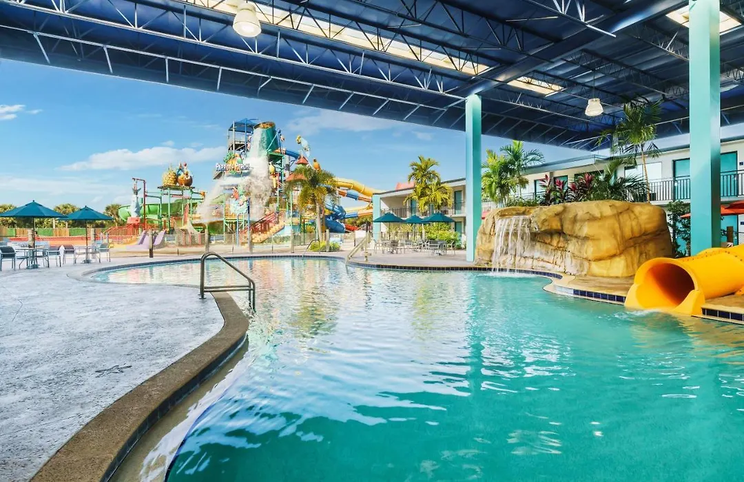 The water park features numerous attractions including water slides and a lazy river, ensuring entertainment for guests of all ages. The arcade provides additional options for indoor fun, while the hotel also offers shuttle services to popular theme parks such as Universal Orlando Resort and Walt Disney World.