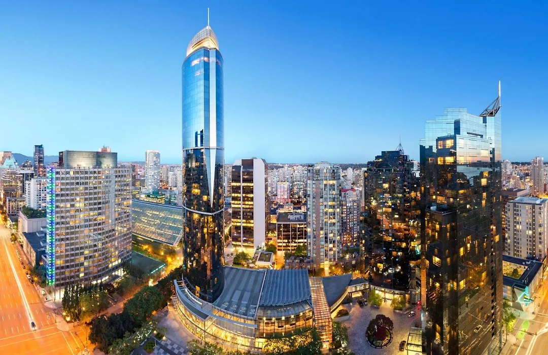 Sheraton Vancouver Wall Centre, a 4-star hotel rated 8.5/10 on Booking.com, features modern amenities, a rooftop terrace, and a variety of on-site dining options, making it suitable for both business and leisure travelers. The hotel is notable for its iconic One Wall Centre, a landmark of downtown's skyline.