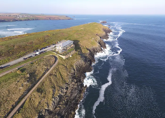 Lewinnick Lodge, a 4-star hotel rated 9.5/10 on Booking.com, presents a luxury coastal retreat with stunning ocean views and an emphasis on local Cornish cuisine. This boutique hotel features 17 spacious luxurious bedrooms and a stylish restaurant with seasonal dishes based on fresh local ingredients.