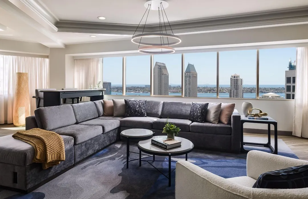 The Westin San Diego Bayview features flexible meeting spaces, such as the Jade Boardroom and Onyx venue, equipped with high-speed Wi-Fi and modern AV equipment. The hotel is also pet-friendly, allowing guests to bring their canine companions.