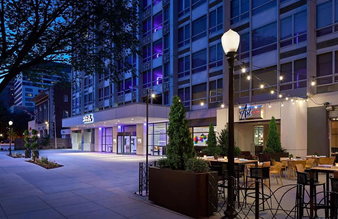 Guests can dine at the award-winning Art and Soul restaurant, known for its seasonal, locally inspired menus. The hotel also offers a full-service bar with light bites and rooftop access for al fresco experiences.